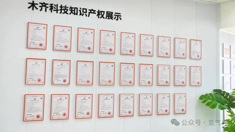 2017年,木齐科技从济南迁回淄博,这家创业六年的公司将总部扎根在了淄博高新区。木齐科技创始人王家胜告诉记者:“回到淄博,我们体会到了宾至如归,深切感受到当地政策的支持。”彼时,借助当地的陶瓷资源优势和“三个一百”政策,木齐科技发展得很顺利。2019年,该企业引进中国科学院理化所黄勇研究团队后,在固态氢原料技术和应用开发方面取得了长足进展,并获得了国家授权发明专利15项、公司授权专利37项,备案企业标准22项,成为国内固态氢产业的引领者。 各项专利、证书布满了木齐科技的荣誉墙。沿着参观路线,实验室内一瓶瓶固体颗粒引起了记者的注意——这就是固态氢的一种体现形式。气体氢怎么就变成了固态氢?应用范围是什么?